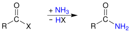Durch Reaktion mit Ammoniak lassen sich die entsprechenden Carbonsäureamide herstellen: