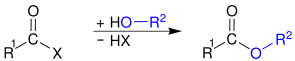 Diese Reaktion ist im Gegensatz zu derjenigen von Carbonsäuren und Alkoholen irreversibel.