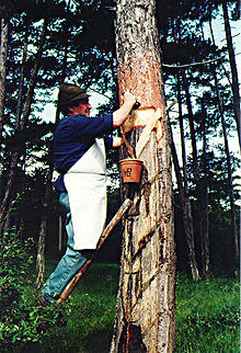 Das wohl bekannteste natürliche Harzprodukt ist Kolophonium, das vorwiegend aus dem Harz von Kiefern und Fichten gewonnen wird und in vielen Produkten Verwendung findet, z.B. als Klebstoff für Heftpflaster, in Kaugummi und zur Behandlung der Bogenhaare bei Streichinstrumenten. Kolophonium ist der feste Rückstand, der beim Erhitzen von Nadelbaumharz nach Abdestillieren des Terpentinöls anfällt. Mit Alkali verseiftes oder durch eine Diels-Alder-Reaktion mit Maleinsäureanhydrid modifiziertes Kolophonium wird in der Papierherstellung eingesetzt, um dieses zu hydrophobieren. Durch diesen, Leimung genannten Prozess wird die Beschreibbarkeit und Bedruckbarkeit des Papiers verbessert.