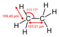 Die Bindungslänge beträgt 109 Pikometer für die C-H-Bindung und 154 Pikometer für die C-C-Bindung, der Abstand zweier Kohlenstoffatome ist also etwa 50 Prozent größer als der Abstand zwischen einem Kohlenstoff- und einem Wasserstoffatom, was in erster Linie mit den unterschiedlichen Atomradien zusammenhängt.
