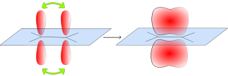 Ethen reagiert in einer En-Reaktion, einer pericyclische Reaktion mit einer Verbindung, die Wasserstoff in allylischer Position unter Bindungsbildung zwischen einem Kohlenstoffatom der Doppelbindung und dem Enophil unter Übertrag des allylischen Wasserstoffs auf das Enophil.