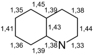 Je nach Reaktionsbedingung kann sowohl der Benzol- als auch der Pyridinring selektiv hydriert werden. Zur Hydrierung des Pyridinrings wird klassisch molekularer Wasserstoff in Methanol bei Raumtemperatur am Platinkatalysator verwendet.[5] Es sind jedoch auch Hydrierungen durch Natriumcyanoborhydrid[67] sowie Natriumborhydrid[68] und Zinkborhydrid[69] in Gegenwart von Nickel(II)-chlorid bekannt. Die selektive Hydrierung des Benzolrings gelingt durch Umsetzung mit Wasserstoff in starken Säuren am Platinkatalysator.[70] Durch längere Reaktionsdauer kann unter diesen Bedingungen auch das vollständig gesättigte Decahydrochinolin erhalten werden.[5] Auch dihydrierte Chinolinderivate sind synthetisch aus Chinolin zugänglich. 1,2-Dihydrochinolin kann durch Reduktion mit Lithiumaluminiumhydrid[71] hergestellt werden, während 1,4-[72] und 3,4-Dihydrochinolin[5] sind durch Reduktion mit elementarem Lithium in flüssigem Ammoniak zugänglich sind. Dihydrierte Chinolinderivate neigen jedoch häufig zu Isomerisierung der Doppelbindung und können deshalb manchmal nicht isoliert werden, sondern treten nur als Zwischenprodukte einer Reaktion auf.