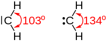 Methylen ist gewinkelt aufgebaut und besitzt im Triplett-Grundzustand einen H,C,H-Bindungswinkel von 134.037(45)°, bestimmt durch Mikrowellenspektroskopie und hochaufgelöste Infrarotspektroskopie. Singulett-Methylen ist energiereicher als Triplett-Carben. Als H,C,H-Bindungswinkel wird 103° oder 105° angegeben.