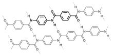 Als flüssigkristalline Polymere (engl. liquid crystalline polymers (LCP)) bezeichnet man Polymere, deren Ketten in der Schmelze flüssigkristalline Phasen bilden. In Kristallen liegt generell eine feste Ordnung vor, während in Flüssigkeiten und Schmelzen die Verteilung der Moleküle oder Atome in der Regel weitgehend zufällig ist. Insoweit ist der Ausdruck flüssigkristallin eigentlich ein Widerspruch. In LCPs orientieren sich die Polymerketten jedoch aufgrund intramolekularer Wechselwirkungen parallel zu Bündeln an. So bilden beispielsweise aromatische Polyamide in Schwefelsäure in Verbindung mit Calcium- oder Lithiumchlorid derartige Phasen. Presst man eine derartige Lösung aus einer Spinndüse durch einen Zwischenraum mit Luft in ein Fällbad (Dry-Jet-Wet-Spinnverfahren), erhält man Fasern, in denen die Ketten in Richtung der Längsachse orientiert sind. Derartige Fasern sind in der Lage, eine für Kunststoffe ungewöhnlich hohe Zugbelastung auszuhalten, die vergleichbar mit Metallen oder Kohlenstofffasern ist. Aufgrund ihrer geringen Dichte setzt man sie, eingebettet in Kunstharze (Composites) im Flugzeug- und Fahrzeugbau ein. Weitere Anwendungen sind schusssichere Westen, Schutzhelme, Schutzanzüge, Surfbretter, Segelbootbau, etc. Wichtige Marken sind: Kevlar, Nomex und Faser B.