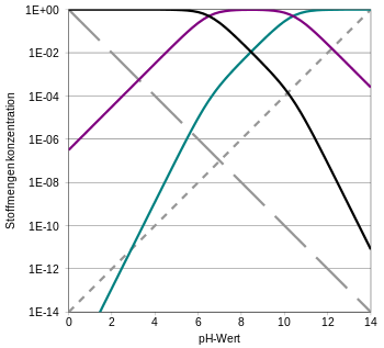 Die Konzentrationen der drei (eigentlich vier) Kohlensäure-Spezies, also der freien Kohlensäure (H2CO3 und gelöstes CO2), des Hydrogencarbonats und des Carbonats sowie der Oxoniumionen stehen miteinander durch das Massenwirkungsgesetz in einem berechenbaren Zusammenhang. Die Konzentration der Oxoniumionen wird durch den pH-Wert ausgedrückt. Bei einem gegebenen pH-Wert ist somit das Mengenverhältnis der Spezies festgelegt.