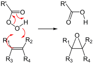 Peroxycarbonsäuren und Alkene können bei Raumtemperatur zu Epoxiden reagieren (Prileschajew-Reaktion). Neben dem Epoxid entsteht eine Carbonsäure. Häufig wird als Peroxycarbonsäure meta-Chlorperbenzoesäure (MCPBA) eingesetzt. Andere Peroxycarbonsäuren, die zur Epoxidierung eingesetzt werden können, sind Peroxyameisensäure und Peroxyessigsäure.