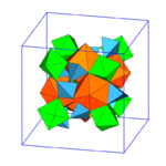Die XO8-Dodekaeder sind über gemeinsame Kanten zu 3er-Ringen verknüpft, deren Ebene senkrecht zur Raumdiagonale der Elementarzelle liegt. Diese XO8-Dodekaederringe sind untereinander so zu einem Gerüst verknüpft, dass jeder Dodekaeder zu zwei solchen Ringen gehört. Über weitere Kanten sind die Dodekaeder mit den Tetraedern und Oktaedern des ZO4-YO6-Gerüstes verbunden, dessen Zwischenräume es ausfüllt.