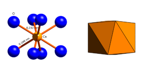 Die Kationen besetzten je nach Größe und Ladung drei verschiedene, spezielle Gitterpositionen, wo sie von 4, 6 oder 8 Sauerstoffionen umgeben sind.
