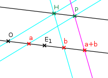 werden eine Addition und Multiplikation durch geometrische Konstruktion