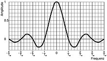 - Bei einem Rechteck-förmigen Zeitfenster mit Unstetigkeits-Stellen an den Fenster-Grenzen werden Frequenzen außerhalb des Übertragungs-Bereichs des Bandfilters mit 1/Frequenz abgeschwächt; man erzielt Flankensteilheiten von 6 dB/Oktave (siehe Abb.2)