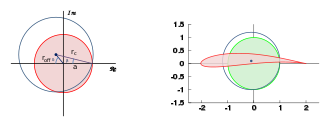 Die nebenstehende Abbildung 2 zeigt an einem Beispiel aus dem „Flugzeugbau“, dass durch die konforme Abbildung komplizierte Kurven auf wesentlich einfachere abgebildet werden können. Das abgebildete Beispiel einer konformen Abbildung ist die Joukowski-Funktion (auch „Schukowski-Funktion“ geschrieben). Bei dieser Abbildung wird das Joukowski-Profil auf einen Kreis abgebildet. Die Geschwindigkeit, mit der etwa Luftteilchen das (zweidimensionale) Tragflügel-Profil umströmen, wird einfacher berechenbar, wenn es um die Umströmung eines Kreiszylinders geht. Damit wird plausibel, dass die konformen Abbildungen in folgenden Gebieten eine wichtige Bedeutung haben, solange man Phänomene in der zweidimensionalen Ebene untersucht: