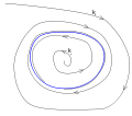 Zwei offene Wege, die sich einem geschlossenen Weg asymptotisch nähern. -