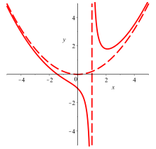 Nicht nur Geraden können Asymptoten zu einer Funktion sein, sondern auch nichtgerade Kurven oder Funktionen. So können zum Beispiel beliebige Polynome (Quadratische Funktionen etc.) Asymptoten zu anderen Funktionen sein. Und wie schon oben für die geraden Asymptoten (außer den vertikalen) beschrieben, gilt auch hier: