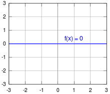 - die reelle Nullfunktion des vorangegangenen Abschnitts und allgemeiner reelle oder komplexe Funktionen ein oder mehrerer Variablen, deren Funktionswert die Zahl Null oder der Nullvektor ist
