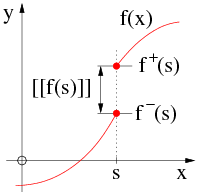 Die Sprungklammer [[...]] ist eine vereinfachende Schreibweise für die Sprunghöhe einer Funktion an einer Unstetigkeitsstelle, siehe Bild.