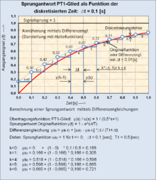 Der Schwerpunkt dieses Artikels befasst sich mit der Erstellung der Differenzengleichungen nach dem Euler-Streckenzug-Verfahren zur numerischen Berechnung dynamischer Systeme. Dabei werden auch andere Diskretisierungsverfahren, Totzeitsysteme, nichtlineare Systeme und die z-Transformation tangiert.