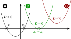 Die Grafik zeigt den Zusammenhang zwischen der Anzahl der reellen Nullstellen und der Diskriminante: