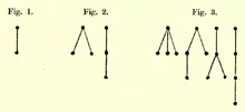 - ↑ Einige der dargestellten Bäume sind isomorph zueinander; nämlich beide Bäume in Fig. 2 sowie in Fig. 3 (von links gezählt) die Bäume 1 und 3 sowie 2 und 4.