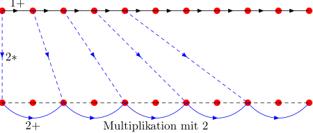 Die Multiplikation mit 2 wird in einem Pfeildiagramm dargestellt