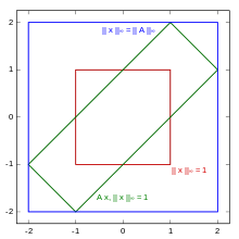 Anschaulich entspricht die Zeilensummennorm dem größtmöglichen Streckungsfaktor, der durch die Anwendung der Matrix auf einen Vektor mit betragsmaximalen Eintrag Eins entsteht. Für die Zeilensummennorm gilt die namensgebende Darstellung