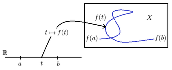In der Topologie und der Analysis ist ein Weg oder eine parametrisierte Kurve eine stetige Abbildung eines reellen Intervalls in einen topologischen Raum. Das Bild eines Weges heißt Kurve, Träger, Spur oder Bogen.