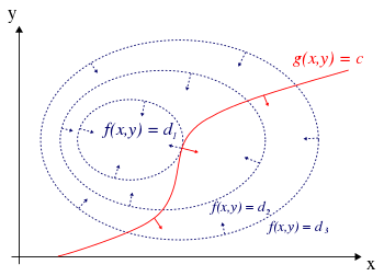 Das Verfahren der Lagrange-Multiplikatoren (nach Joseph-Louis Lagrange) ist in der mathematischen Optimierung eine Methode zur Lösung von Optimierungsproblemen mit Nebenbedingungen. Ein Optimierungsproblem mit Nebenbedingungen ist die Aufgabe, ein lokales Extremum einer Funktion in mehreren Veränderlichen mit einer oder mehreren Nebenbedingungen zu finden, wobei die Nebenbedingungen durch Setzen von Funktionen auf gegebene Werte definiert seien. Diese Methode führt eine neue unbekannte skalare Variable für jede Nebenbedingung ein, einen Lagrange-Multiplikator, und definiert eine Linearkombination, die die Multiplikatoren als Koeffizienten einbindet. Die Lösungen der ursprünglichen Optimierungsaufgabe können dann unter gewissen Voraussetzungen als kritische Punkte dieser sogenannten Lagrange-Funktion bestimmt werden.