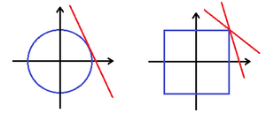 und jeder Punkt hat genau eine Stützhyperebene, nämlich die Tangente an diesem Punkt, das