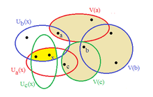 - Jede Umgebung eines Kompaktums in einem uniformen Raum ist gleichmäßige Umgebung. Das heißt, es liegt mit einer Nachbarschaft in der Umgebung. Im metrischen Falle heißt dies, dass alle Punkte mit gleich großen Kugeln einer gewählten Größe innerhalb der Umgebung liegen. Die Nachbarschaft kann sogar so gewählt werden, dass das Komplement der Umgebung mit der Nachbarschaft außerhalb des Kompaktums mit der Nachbarschaft liegt.