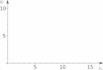 Diese Animation zeigt die Streuungszerlegung, d.h. die Zerlegung der totalen Quadratsumme in die erklärte Quadratsumme (der Anteil der Gesamtstreuung, der durch {\hat  {y}} erklärt werden kann) und die Residuenquadratsumme. Ebenfalls zu sehen ist, dass die –durch die Kleinste-Quadrate-Schätzung gewonnene– Regressionsgerade durch das „Gravitationszentrum“ {\displaystyle G({\overline {x}},{\overline {y}})} der Punkteverteilung im Streudiagramm verläuft (siehe auch, algebraische Eigenschaften der Kleinste-Quadrate-Schätzer).