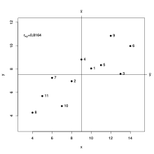 Über die Quadrantenkorrelation kann mit Hilfe des Median-Tests die Hypothesen