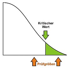 Liegt die Prüfgröße t, das ist eine Realisierung einer Teststatistik T, im Ablehnbereich, ist t also größer als der kritische Wert, so