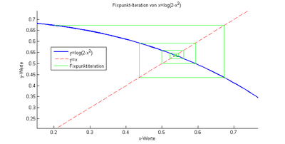 Durch Logarithmieren erhält man die Fixpunktgleichung