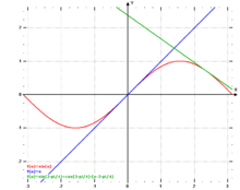 Das einfachste Verfahren zur Linearisierung ist das Einzeichnen der Tangente in den Graphen. Daraufhin können die Parameter der Tangente abgelesen werden, und die resultierende lineare Funktion (Punktsteigungsform der Geraden)