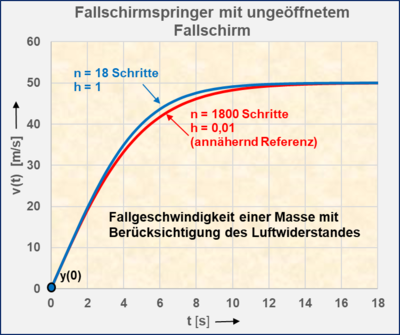 Berechnungsbeispiel für einen Fallschirmspringer bei ungeöffnetem Fallschirm