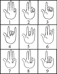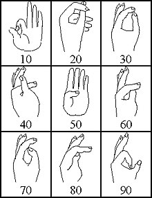 Den in römischer und mittelalterlicher Zeit verbreiteten, in etwas anderer Form auch in der arabischen Welt gebrauchten Fingerzahlen lag ein dezimales System für die Darstellung der Zahlen 1 bis 9999 zugrunde, ohne Zeichen für Null, und mit einem Positionssystem eigener Art. Hierbei wurden durch genau festgelegte Fingerstellungen auf der linken Hand mit kleinem, Ring- und Mittelfinger die Einer 1 bis 9 und mit Zeigefinger und Daumen die Zehner 10 bis 90 dargestellt, während auf der rechten Hand die Hunderter mit Daumen und Zeigefinger spiegelbildlich zu den Zehnern und die Tausender mit den drei übrigen Fingern spiegelbildlich zu den Einern dargestellt wurden. Diese Fingerzahlen sollen nicht nur zum Zählen und zum Merken von Zahlen, sondern auch zum Rechnen verwendet worden sein; die zeitgenössischen Schriftquellen beschränken sich jedoch auf die Beschreibung der Fingerhaltungen und geben keine nähere Auskunft über die damit durchführbaren rechnerischen Operationen.