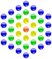 Die 37 ist die vierte zentrierte Sechseckszahl.