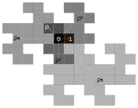 , die Potenzen der Basis sind also rechts. Das Trennzeichen ist bei ganzen Zahlen weggelassen.) Hiermit und mit Hilfe der gezeigten Additionstafel lässt sich jede Hurwitzquaternion codieren. (Für den Bau einer Arithmetik für die Hurwitzquaternionen sind jedoch Additionstafeln geschickter, die zu jeder der 9 Ziffernsummen zweier Summanden und jedem der 225 möglichen Überträge die neuen Überträge enthalten.) Wegen