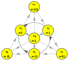 eine Gerade bilden, sowie ein zusätzliches imaginäres Einheits-Oktonion
