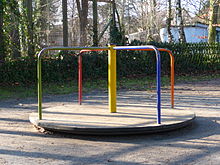 Der Drallsatz, Momentensatz, Drehimpulssatz, Impulsmomentsatz oder die Drehimpulsbilanz ist in der klassischen Mechanik ein physikalisches Gesetz, das besagt, dass zur Änderung des Drehimpulses eines Körpers ein Drehmoment an ihm aufgebracht werden muss. Ein Anwendungsbeispiel ist das Spielplatzkarussell im Bild. Um dies in Drehung zu versetzen, muss man es anstoßen. Technisch gesehen bringt man dabei ein Moment auf, das dem Karussell Drehimpuls zuführt. Die Drehimpulserhaltung sorgt dann dafür, dass das Karussell eine Weile weiter dreht. Reibungsmomente im Lager und Luftwiderstand erzeugen jedoch ein Gegenmoment, das den Drehimpuls aufzehrt und die Rotation schließlich wieder zum Erliegen bringt.