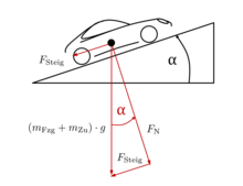 Hangabtrieb eines Fahrzeugs auf der schiefen Ebene