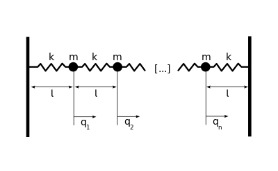 Schwingungen eines Kontinuums, beispielsweise eine Saitenschwingung können mit Hilfe eines unendlich dimensionalen gekoppelten harmonischen Oszillators beziehungsweise unendlich vielen eindimensionalen gekoppelten harmonischen Oszillatoren beschrieben werden. Der Übergang zu unendlich vielen Oszillatoren wird nachfolgend für eine Longitudinalwelle durchgeführt. Das Verfahren lässt sich analog auch für Transversalwellen durchführen.