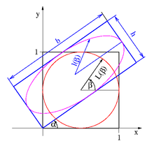 In der Mitte des Quadrates wird eine gerade Linie der Länge ½ in einem Winkel