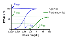 - der Maximaleffekt eines Wirkstoffs (streng mathematisch betrachtet, nähert sich die Kurve dem Maximaleffekt asymptotisch an). Der Maximaleffekt ist auch ein Maß der intrinsischen Aktivität eines Wirkstoffs.