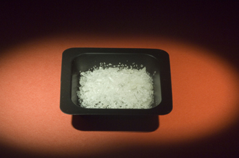 Eine synthetische Substanz. Normalerweise ein weißes Pulver, das das zentrale Nervensystem (ZNS) stimuliert. Methamphetamin wurde erstmals 1919 in Japan hergestellt und hat begrenzten therapeutischen Nutzen; es wird größtenteils in illegalen Labors vor allem in den USA und in Fernost hergestellt. Es steht unter internationaler Kontrolle und ist eng verwandt mit Amphetamin.