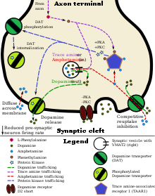 Bei ADHS besteht möglicherweise ein Dopaminmangel (vorwiegend) im Striatum. Die typischen ADHS-Medikamente (Stimulanzien wie Methylphenidat oder Amphetamine) bewirken auf verschiedene Weisen (Methylphenidat als Dopaminwiederaufnahmehemmer, Amphetamin als Dopaminfreisetzungsverstärker) eine Erhöhung des Dopaminspiegels im synaptischen Spalt – bei richtiger Dosierung auf das Maß, das wie bei Nichtbetroffenen eine störungsfreie Signalübertragung gewährleistet. Bei Überdosierung (zu hoher Dopaminspiegel) entstehen Signalübertragungsprobleme, die nahezu dieselben Symptome verursachen wie ein zu geringer Dopaminspiegel.