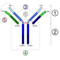 Die einfachsten Antikörper, die der sogenannten IgG-Klasse, bestehen aus zwei identischen schweren Ketten und zwei identischen leichten Ketten. Die schweren Ketten sind unter anderem für die Verankerung des Antikörpers auf der Oberfläche von Granulozyten zuständig; die leichten Ketten bilden zusammen mit den schweren Ketten die für die Erkennung eines spezifischen Antigens verantwortliche Antigendeterminante im Fab-Fragment. Durch somatische Rekombination, somatische Hypermutation und Kombination verschiedener leichter und schwerer Ketten können Antikörper mehr als 100 Millionen verschiedene Fab-Fragmente bilden und damit eine Unzahl verschiedener Antigene erkennen.