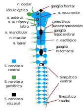 Bei den Gliederfüßern kommt es bereits zur Ausbildung von höheren Verarbeitungszentren in Form mehrerer Nervenknoten (Ganglien). Diese Ganglien sind durch zwei Nervenstränge strickleiterartig miteinander verbunden, weshalb man hier von einem Strickleiternervensystem spricht. Bei den meisten dieser Tiere ist das Oberschlundganglion besonders groß ausgebildet. Es übernimmt bereits Funktionen eines „Gehirns“, insbesondere die Verarbeitung von Sinnesreizen. Die Ganglien der Körpersegmente steuern häufig die Bewegungen der Bein- und Flügelmuskulatur weitgehend autonom. Die Strickleiternervensysteme liegen (mit Ausnahme des Oberschlundganglions) unterhalb des Verdauungsapparates. Daher spricht man auch vom Bauchmark.