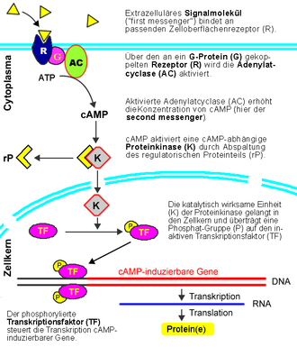 Intrazelluläre Stimuli, wie z.B. Calciumionen (Ca2+), sind oft selbst Bestandteil von Signaltransduktionskaskaden.