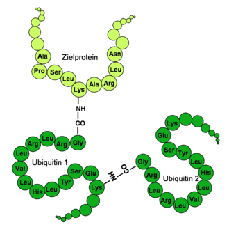 - ↑ C. M. Pickart, D. Fushman: Polyubiquitin chains: polymeric protein signals. In: Curr Opin Chem Biol. 8 (6), Dezember 2004, S. 610–616.