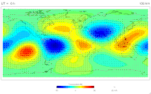 - Die Elektronendichte ist im Winter höher als im Sommer. Des Weiteren korreliert das sommerliche Ionisationsmaximum nicht mit dem höchsten Sonnenstand, sondern ist an den Äquinoktien (Tagundnachtgleichen) festzustellen. Verantwortlich hierfür sind atmosphärische Vorgänge, die im Sommer zu einer Absenkung der Elektronendichte führen. Insbesondere scheint das Verhältnis O/O2 und O/N2 relevant zu sein, das den Aufbau und Verlust von Ionen in der F2-Schicht steuert. Ein sommerlicher Überschuss an O2 durch die globale atmosphärische Zirkulation wird als Ursache für eine Absenkung der Elektronendichte in dieser Jahreszeit gesehen.